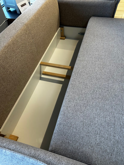 Canapea extensibila cu lada de depozitare, brate inguste. Dimensiune 215 cm, suprafata de dormit 190/153 cm.
