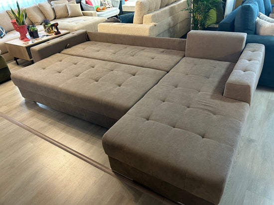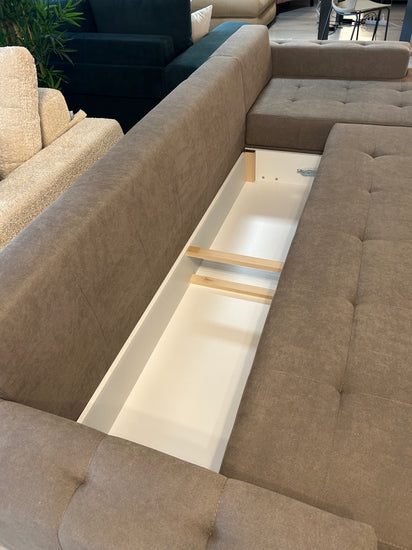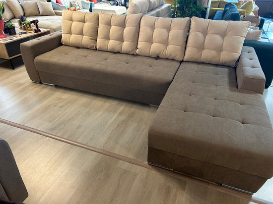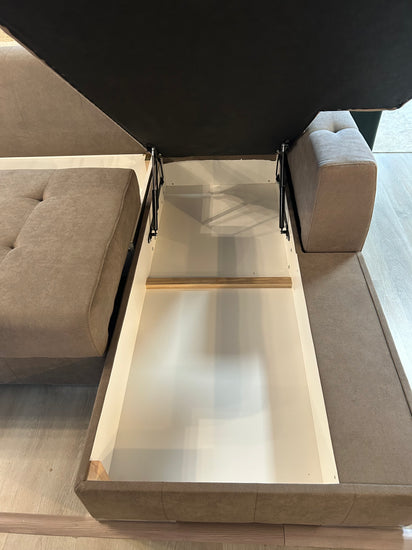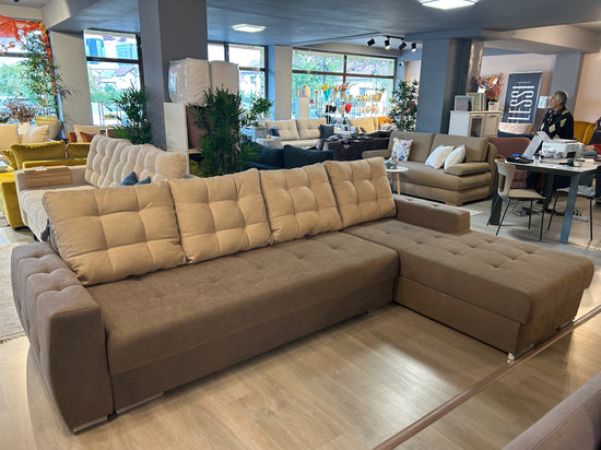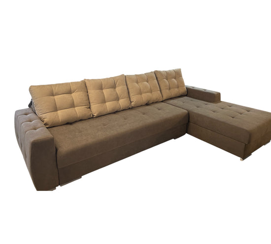 Coltar extensibil cu 2 lazi de depozitare, fermitate medie. Include 4 perne mari.