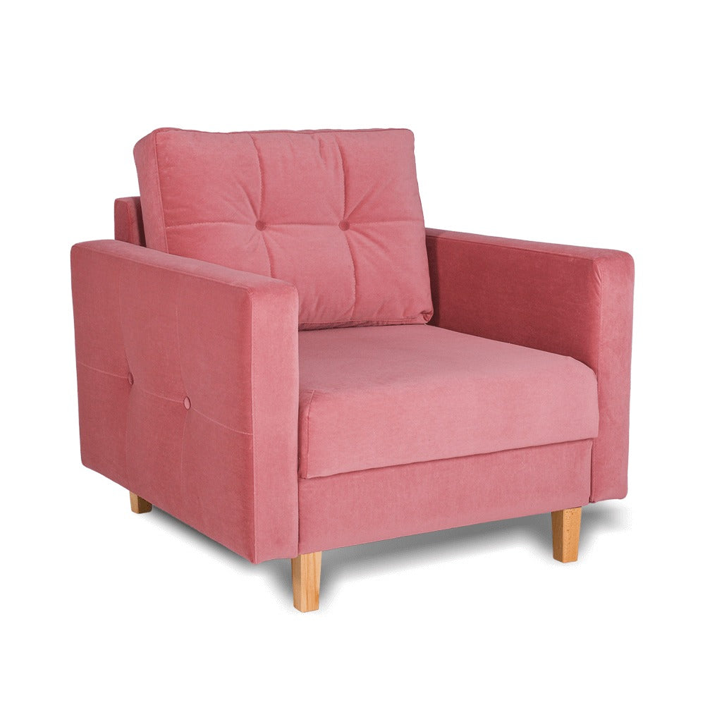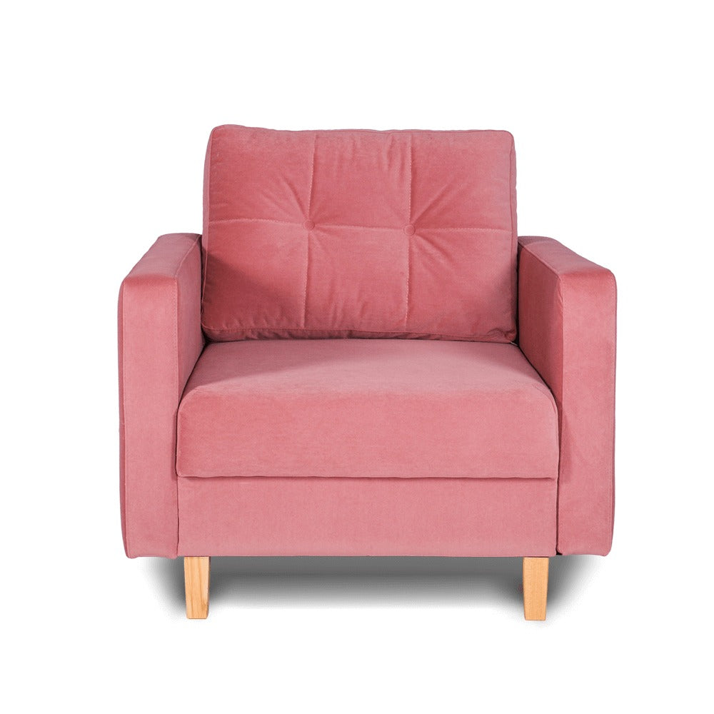 Fotoliu fix, pe structura din spuma si arcuri sinusoidale, picioare de lemn
