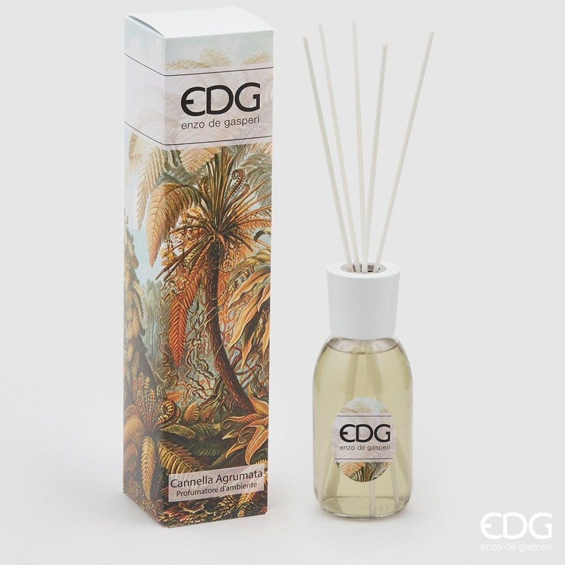 Difuzor parfum de cameră cu aromă de scorțișoară și citrice din colecția premium Enzo de Gasperi.