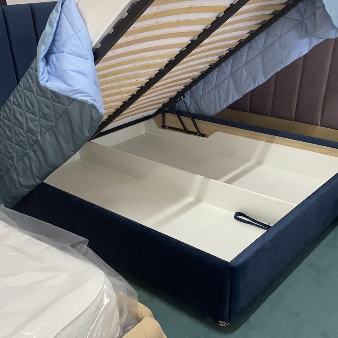 Pat tapitat cu somiera rabatabila si lada de depozitare, personalizabil.