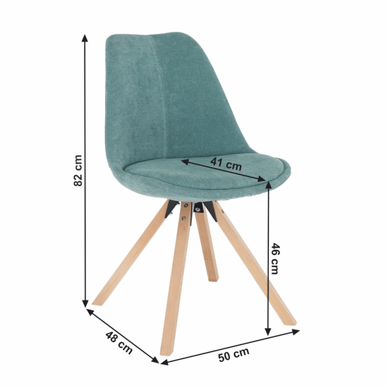 Scaun dining SABRA, Material: textil mentol si picioare din lemn de fag. Dimensiuni (lxhxA): 50x82x48 cm Înălţime şezut: 46 cm Greutate susţinută: 110kg Se livrează demontat.