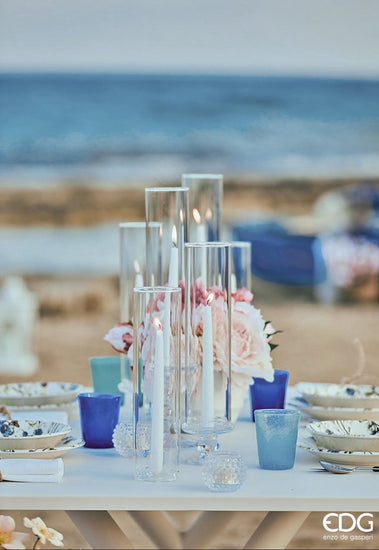 Set compus din 2 bucati suport lumanare din sticla. se poate folosi individual, sau in combinatie cu cilindru de lumanari paravant.