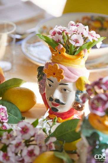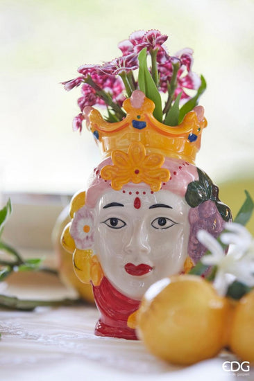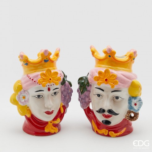 Set 2 vaze in forma de cap -El si Ea-model Sicilia, din ceramica, inaltime 17 cm