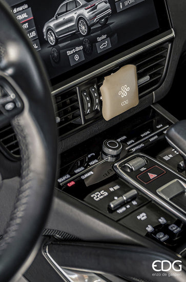 Odorizant de masina, design deosebit, aroma de ambra marocana, imbracat in piele, brand Enzo de Gasperi