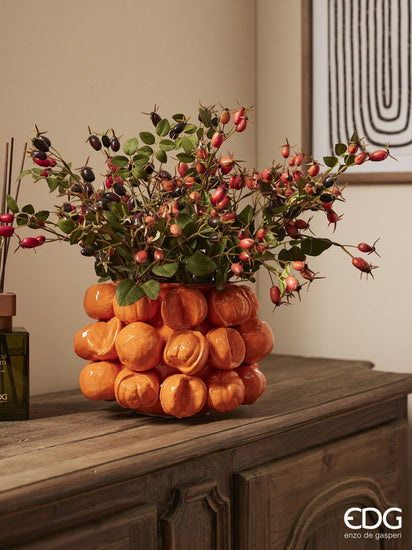 Vaza ceramica decorata cu mandarine, inaltime 19 cm, diametru 28 cm, realizata manual, brand Enzo de Gasperi